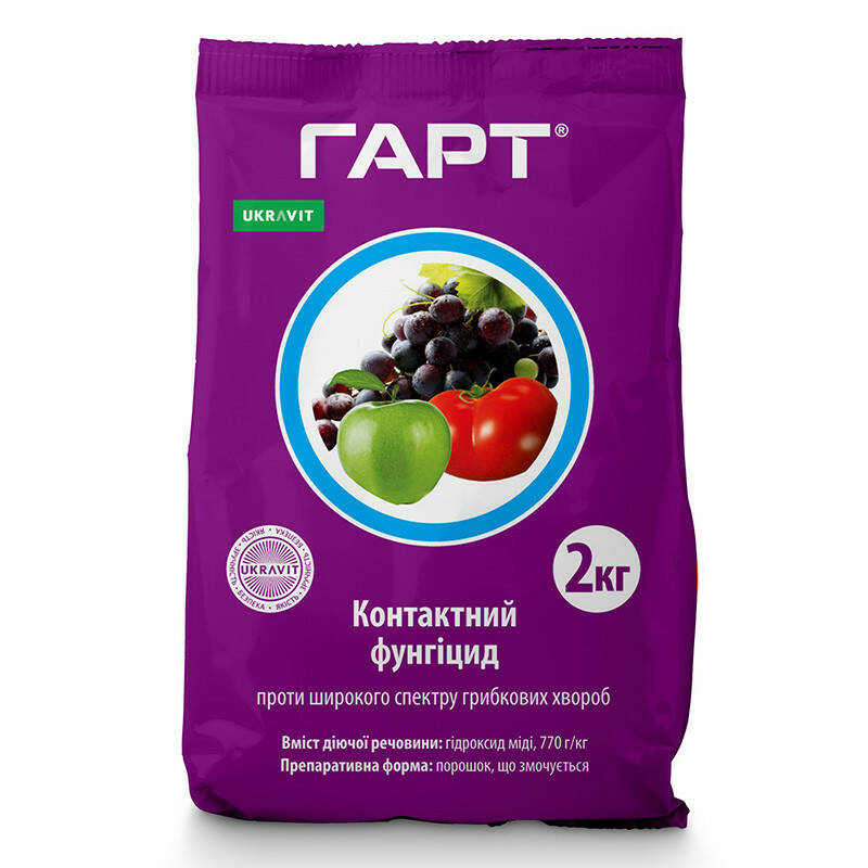 Гарт - контактно – системний фунгіцид профілактичної та терапевтичної дії для захисту винограду, картоплі, помідорів, огірків, цибулі та інших сільськогосподарських культур від збудників несправжньої борошнистої роси (мільдью на винограді), фітофторозу, пероноспорозу, альтернаріозу та інших плямистостей.