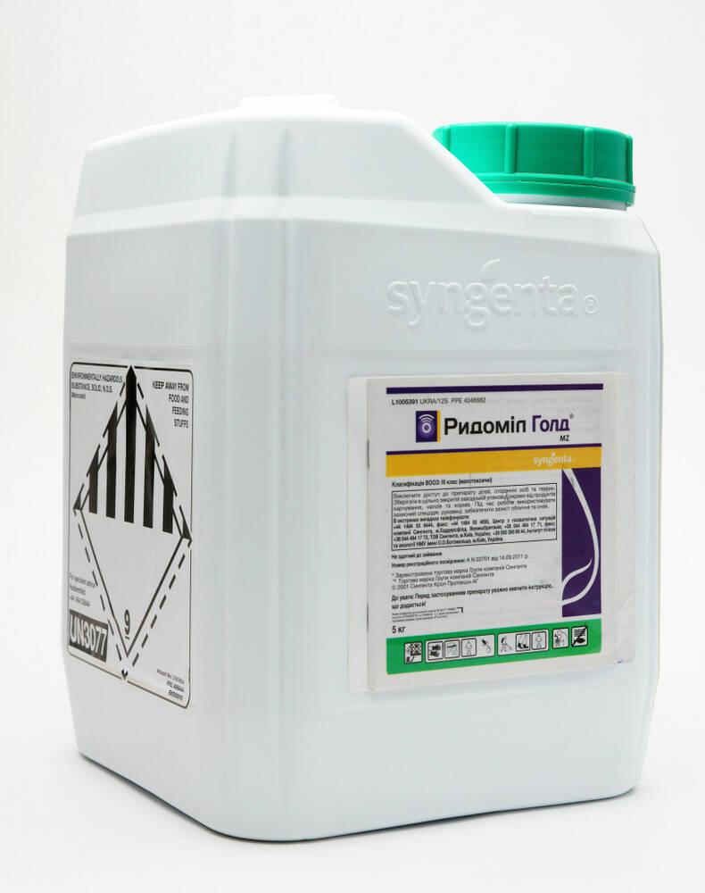 Ридоміл Голд - комбінований фунгіцид контактної та системної дії для боротьби з хворобами картоплі, томатів, огірків, винограду, цибулі, ріпаку, хмелю.