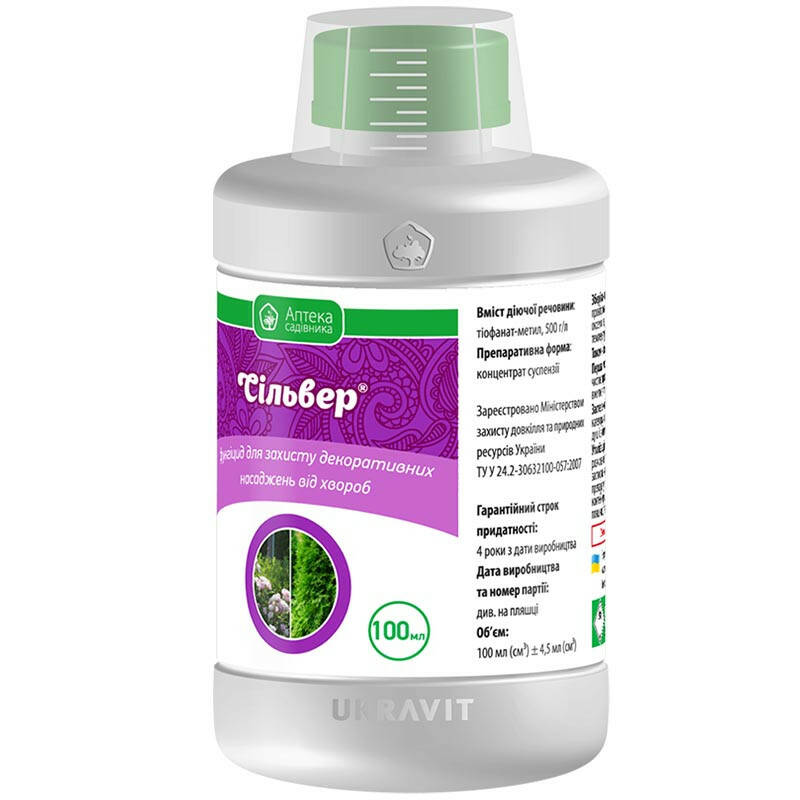 Сільвер – це системний фунгіцид захисної та лікувальної дії для захисту декоративних насаджень від широкого спектра хвороб. Він швидко проникає у тканини рослин, забезпечуючи надійний захист від внутрішніх та зовнішніх інфекцій.