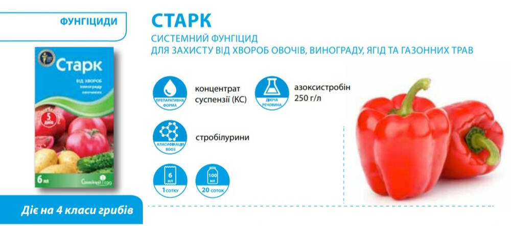Старк - Системный фунгицид для защиты от болезней овощей, винограда, ягод и газонных трав.
