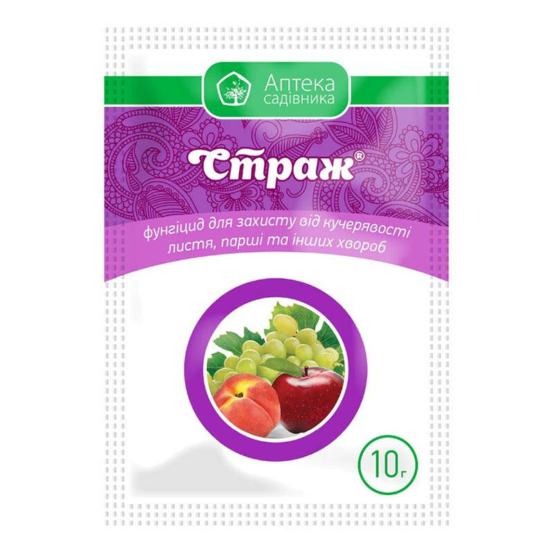 Страж – це системний фунгіцид проти комплексу хвороб плодово-ягідних насаджень і винограду. Виконує швидкий і тривалий діючий захист рослин від хвороб. Фунгіцид можна легко інтегрувати в загальний план захисту рослин.