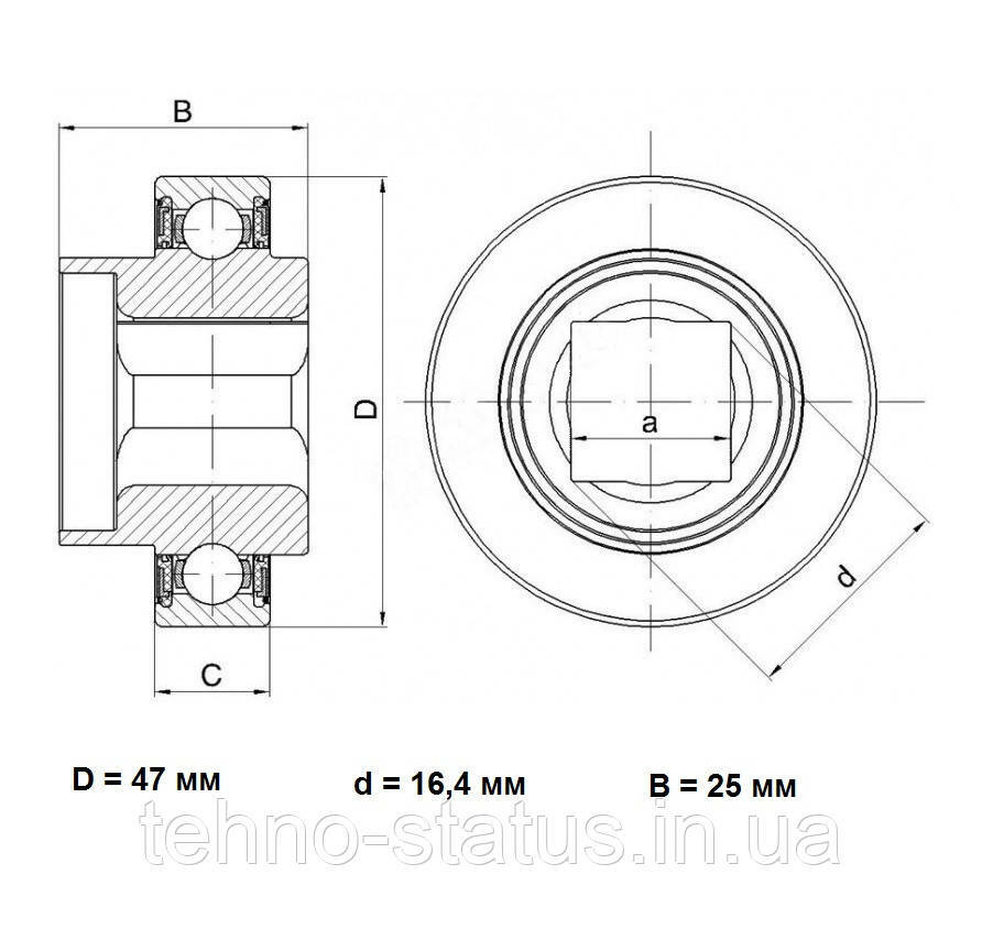 Підшипник з квадратним внутрішнім отвором