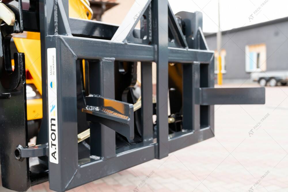 Гак для біг-бегів - А.ТОМ — навісне обладнання для телескопічного та фронтального навантажувача JCB, Manitou, Bobсat, New Holland, Claas, Merlo, Dieci, Faresin, Caterpillar, призначене для переміщення, завантаження та розвантаження біг-бегів, контейнерів, для транспортування добрив, зерна та іншої упакованої продукції без втрат та пошкоджень. Дане обладнання дозволяє підіймати та підвішувати мішки над сівалками та змішувальними установками для зручного завантаження посівного матеріалу. Конструкція оснащена «вухом» для кріплення гака, тому його можна використовувати для переміщення інших важких конструкцій.