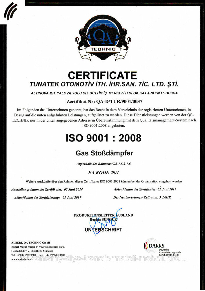 Турецкие газовые амортизаторы TGS разработаны по высоким качествам стандартов, используються экологически чистые материалы. Товар сертифицирован в соответствии с DIN ISO 9001:2008.