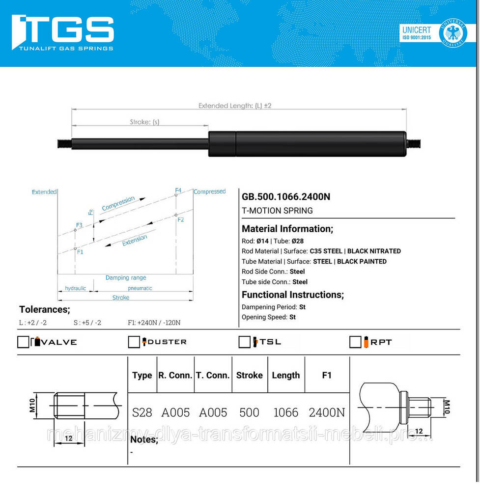 Газовый амортизатор, газлифт L 1160 \ 1146мм Турция TGS - TUNATEK