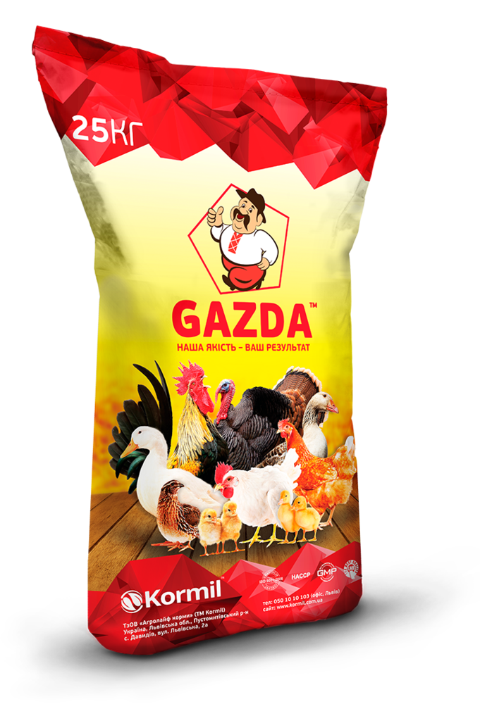 1. Ідеальний баланс компонентів. Продукція лінії GAZDA складається із зернових культур вищого сорту, високо засвоюваної білкової сировини, європейських вітамінів та мінералів.
