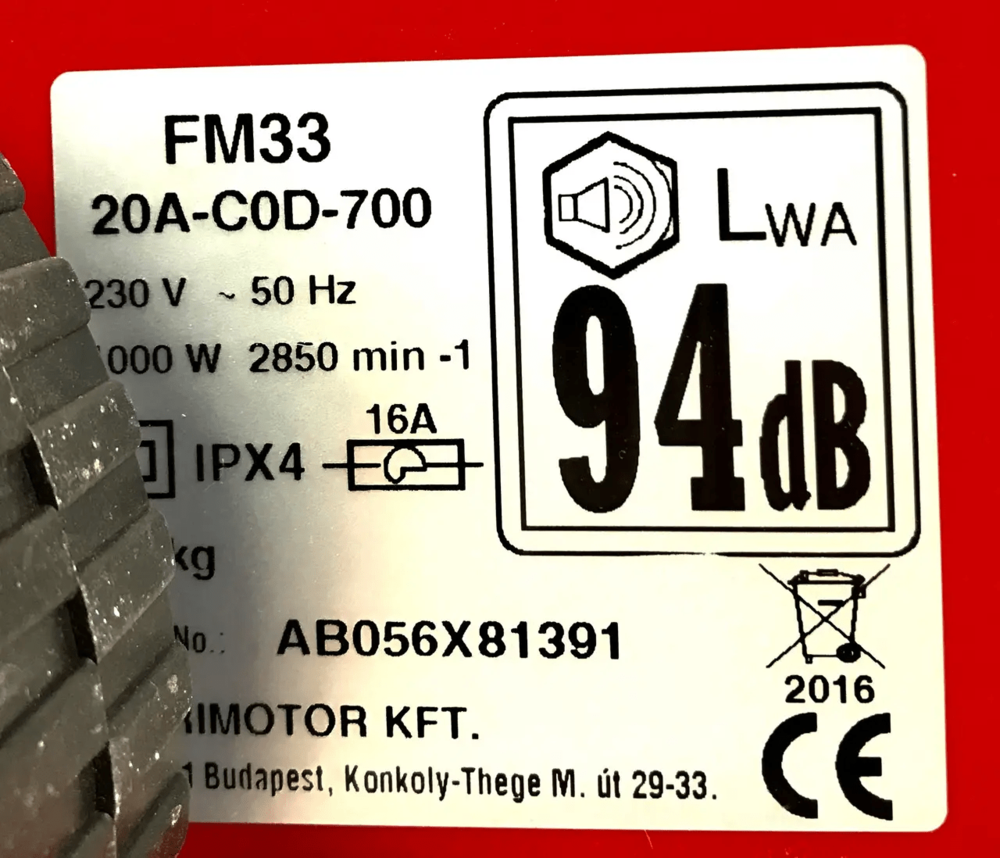 Газонокосарка Agrimotor FM33 оснащена електричним двигуном, потужність якого 1000 Вт.