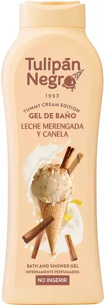 Tulipan Negro «Yummy Cream Молочне безе» — ароматний гель для душу з ніжним, солодким ароматом, нагадуючим молочне безе або легкий десерт. Засіб має м’яку, кремову текстуру, яка при контакті з водою утворює приємну піну й дбайливо очищує шкіру, не пересушуючи її. Після душу шкіра залишається гладкою, м’якою, приємною на дотик і наповненою ніжним, затишним ароматом. Завдяки великому об’єму 650 мл цей гель вигідний у використанні та підходить для щоденного домашнього догляду.