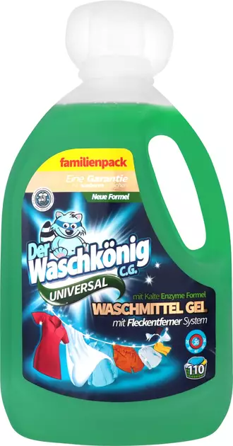 Пральний гель Der Waschkönig Universal — це сильний, концентрований засіб. Він дуже добре розчиняється у воді та легко вимивається з тканин.