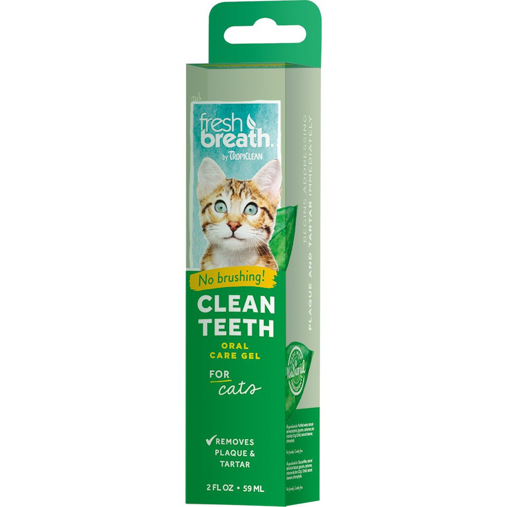 TropiClean Fresh Breath Oral Care Clean Tee Gel for Cats підтримує здоров’я ротової порожнини вашої кішки та дарує їй свіже дихання – чистити зуби щіткою не потрібно! Цей смачний гель зі смаком м’яти допомагає безпечно та ефективно видалити наліт і зубний камінь, освіжаючи подих.