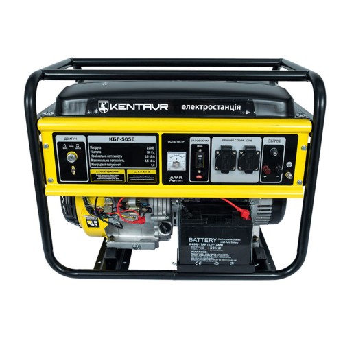 Генератор бензиновий Кентавр КБГ-505Е здатний забезпечити стабільним змінним електричним струмом напругою 220 В в тих місцях, де централізовану електричну мережу за різних обставин використовувати неможливо. Відмінною особливістю цієї моделі є електричний стартер, який забезпечує легкий запуск двигуна.