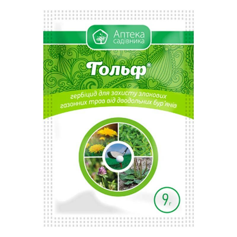 Гольф-cелективний післясходовий гербіцид системної дії для знищення найбільш поширених та важковикорінювальних  однорічних та багаторічних видів бур’янів у посівах злакових газонних трав.