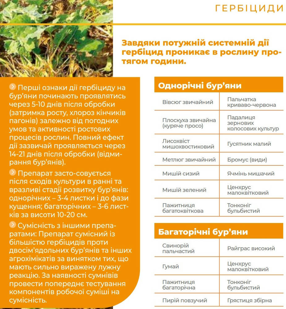 - Препарат применяется после всходов культуры в ранние и уязвимые