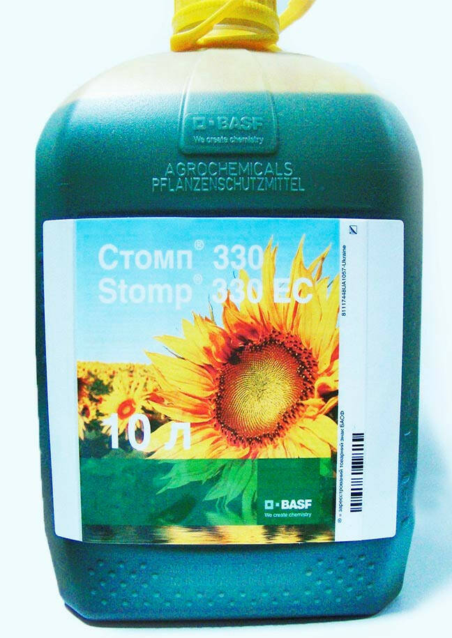 Стомп - селективний ґрунтовий гербіцид для контролю однорічних дводольних злакових бур'янівв посівах соняшнику, кукурудзи, цибулі ріпчастої, моркви і ряду інших важливих культур.