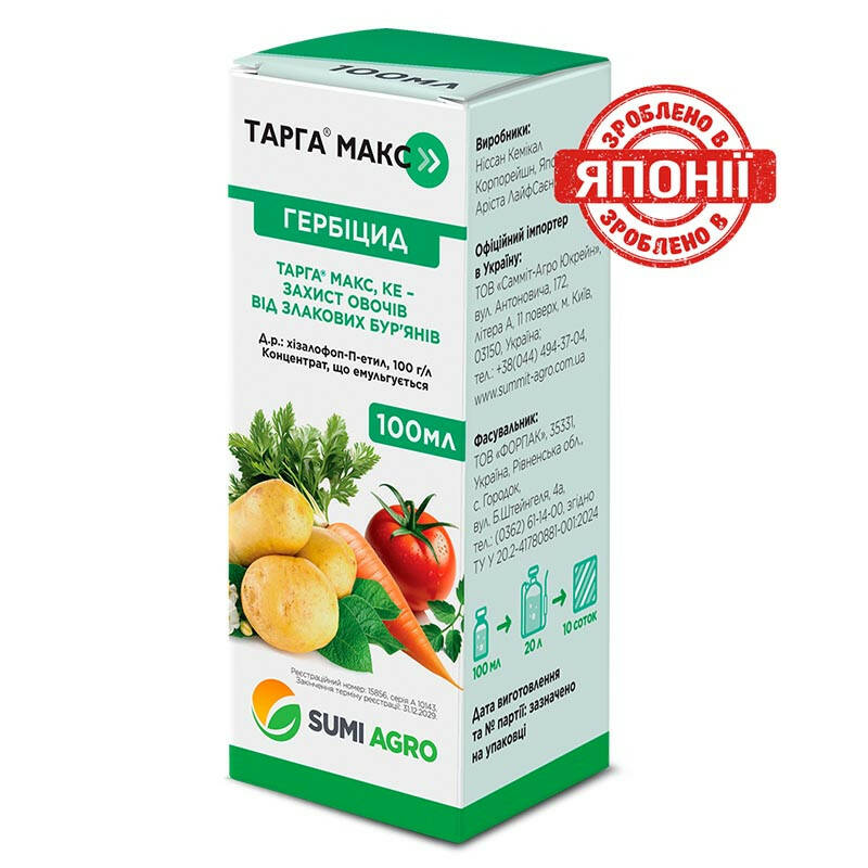 Тарга Макс – це ефективний гербіцид вибіркової дії, призначений для боротьби зі злаковими бур'янами на посівах овочевих, бобових, технічних та інших культур.