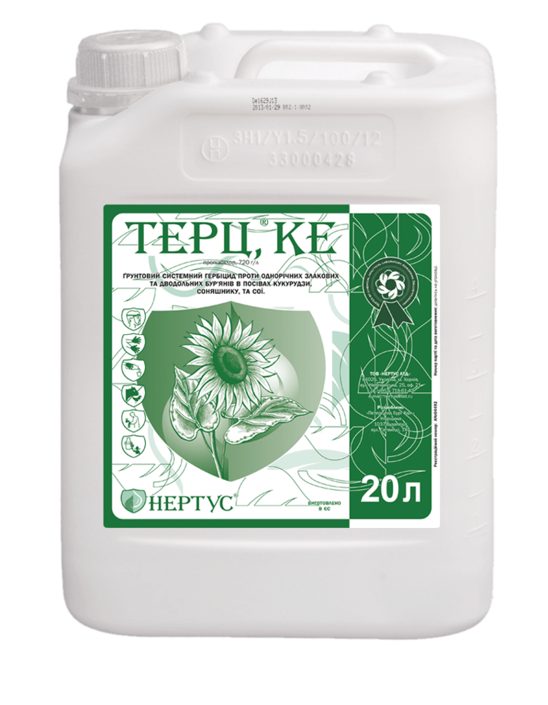 Для отримання хорошого врожаю необхідно дбати та захищати здоров'я молодих посівів, тому інтернет-магазин ГектареUA пропонує придбати ефективний захисний засіб Терц від виробника Нертус . Основною діючою речовиною концентрованої емульсії є пропізохлор, який ефективно бореться з однорічними злаковими та дводольними бур'янами.