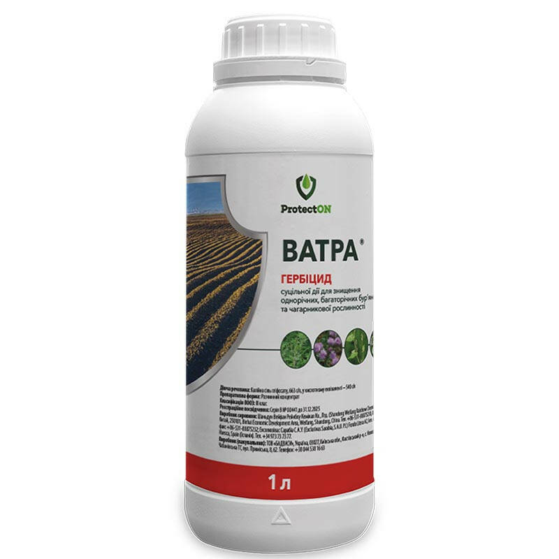 Гербіцид Ватра – це системний гербіцид суцільної дії, десикант для знищення однорічних і багаторічних бур’янів, в т. ч. чагарникової рослинності.