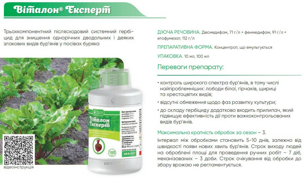 Виталон Експерт - Трехкомпонентный послевсходовый системный гербицид для уничтожения однолетних двудольных и некоторых злаковых видов сорняков в посевах свеклы.