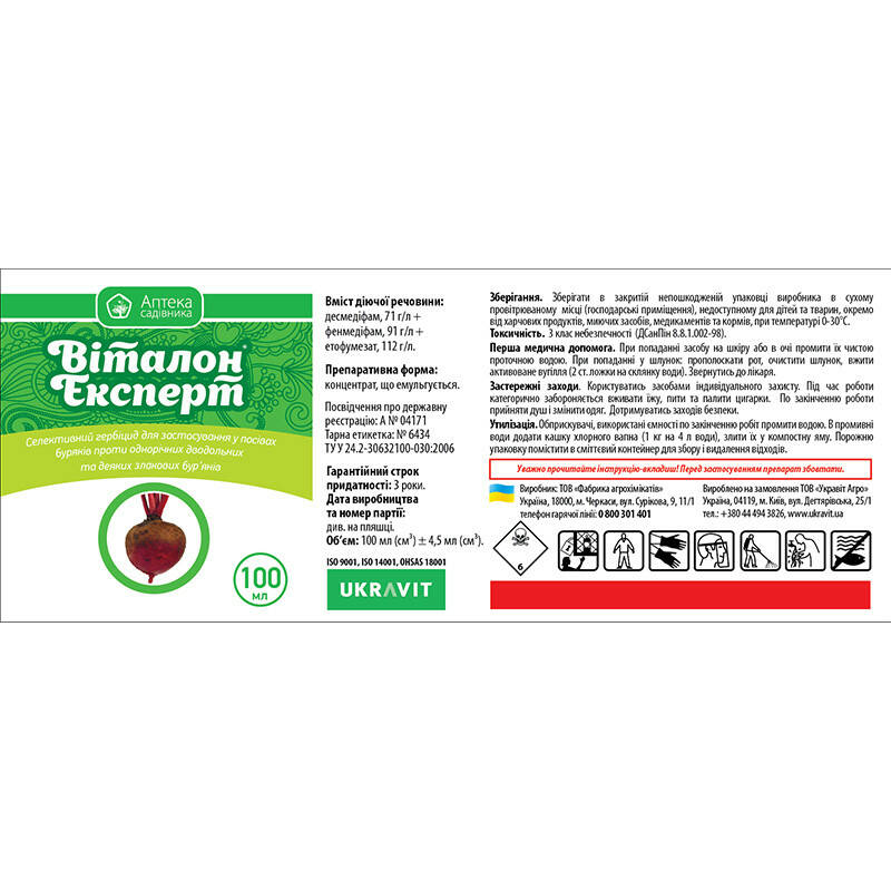 Віталон Експерт - трикомпонентний післясходовий системний гербіцид для боротьби з однорічними дводольними та деякими злаковими бур’янами на посівах цукрових буряків.