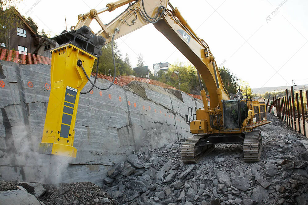 Гідромолот Epiroc HB10000 на екскаватор. Діаметр інструменту — 240 мм. Вага машини-носія — 85-140 т. Гідромолоти важкого вагового класу серії HB повністю адаптовані до видобутку каменю безвибуховим способом, а також дроблення негабариту на будівельному майданчику, в кар'єрах і шахтах. Крім того, вони відмінно справляються із завданнями з розбирання масивних конструкцій з армованого бетону.