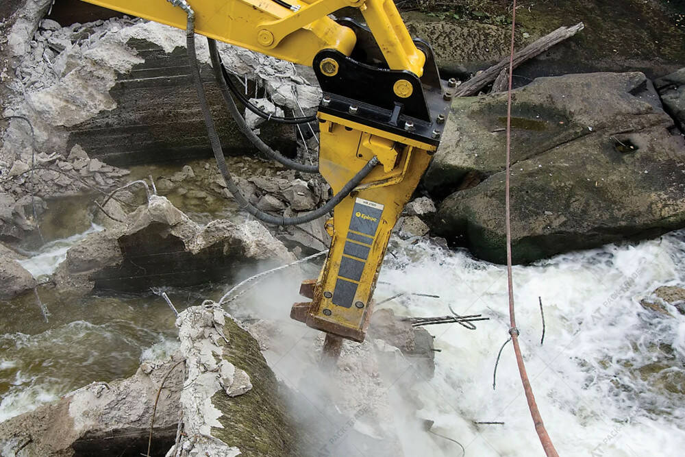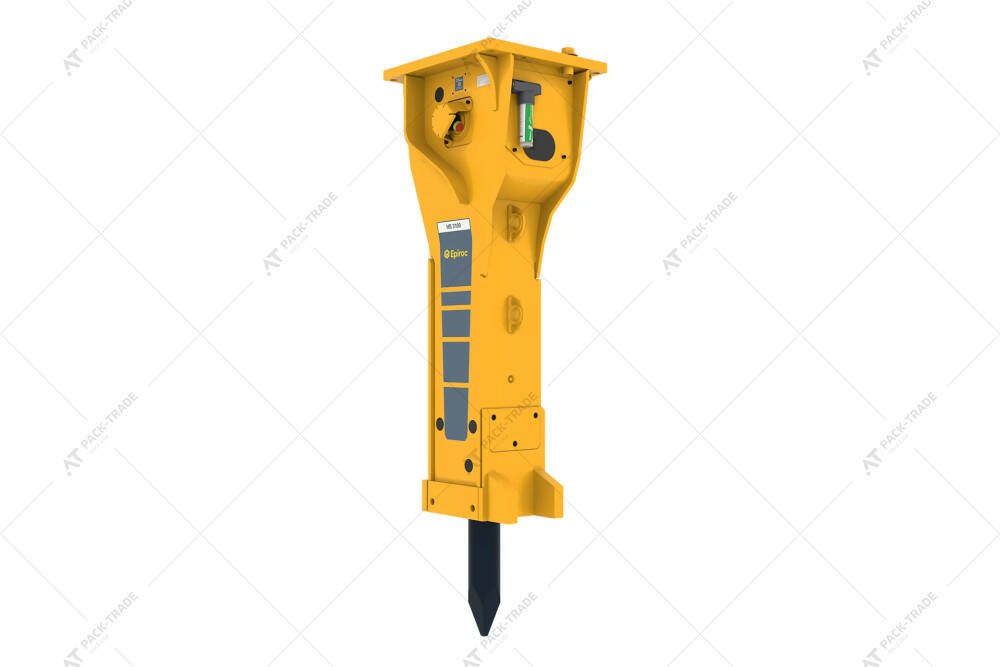 Гідромолот Epiroc HB3100 на екскаватор. Діаметр інструменту — 165 мм. Вага машини-носія — 32-52 т. Гідромолоти важкого вагового класу серії HB повністю адаптовані до видобутку каменю безвибуховим способом, а також дроблення негабариту на будівельному майданчику, в кар'єрах і шахтах. Крім того, вони відмінно справляються із завданнями з розбирання масивних конструкцій з армованого бетону.
