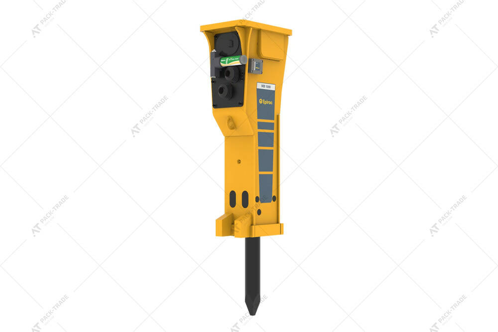 Гідромолот Epiroc MB1000 на екскаватор. Діаметр інструменту — 110 мм. Вага машини-носія — 12-21 т. Молоти середнього вагового класу серії MB відмінно справляються з розбиранням бетонних конструкцій, розкриттям асфальту, дробленням негабариту і первинним розломом породи на будівельному майданчику.