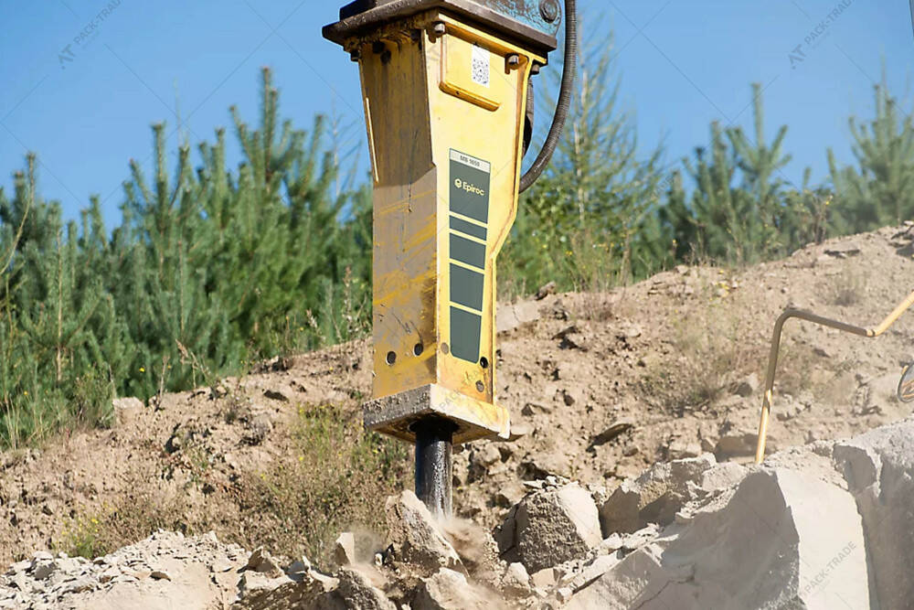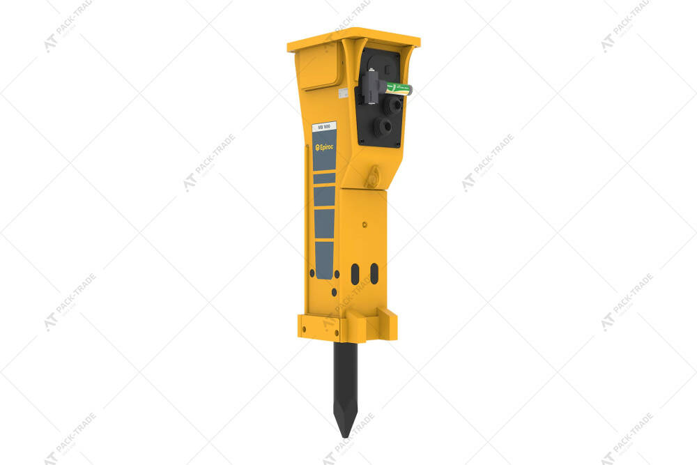Гідромолот Epiroc MB1650 на екскаватор. Діаметр інструменту — 140 мм. Вага машини-носія — 19-32 т. Молоти середнього вагового класу серії MB відмінно справляються з розбиранням бетонних конструкцій, розкриттям асфальту, дробленням негабариту і первинним розломом породи на будівельному майданчику.