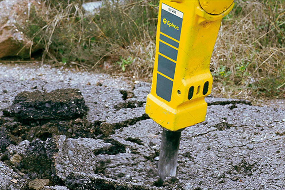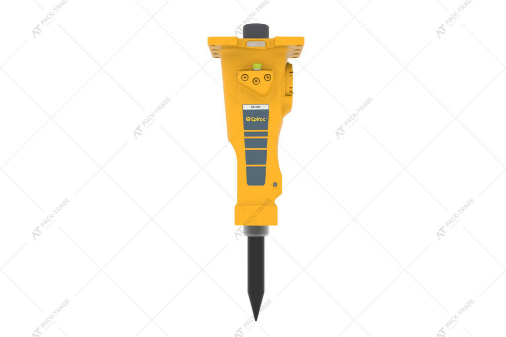 Гідромолот Epiroc SB202 на екскаватор, міні екскаватор. Діаметр інструменту — 65 мм. Вага машини-носія — 2,5-6 т. Молоти з монолітним корпусом серії SB ідеально підходять для таких внутрішніх і зовнішніх робіт, як розбирання легких бетонних конструкцій, розтин асфальту, земляні роботи, відшаровування матеріалу на підземних об'єктах, очищення ливарних ковшів і конвертерів.