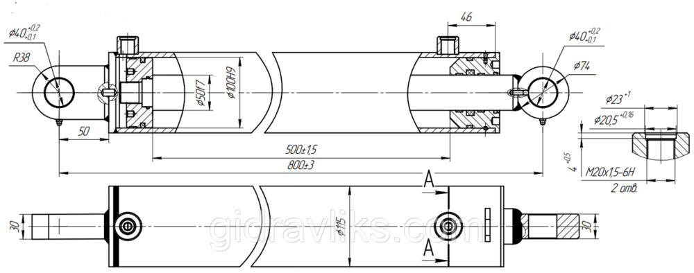 Гідроциліндр 100х50х500х800 (хід штока 500 мм) Дровокол КПГ-8, АГМ-4,2