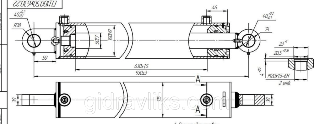 Гідроцилиндр 100х50х630х930 ПП ( хід штока 930 мм) БДВП-4.2,БДВП -5.5,БДВП -6.3, БДВП –7.2