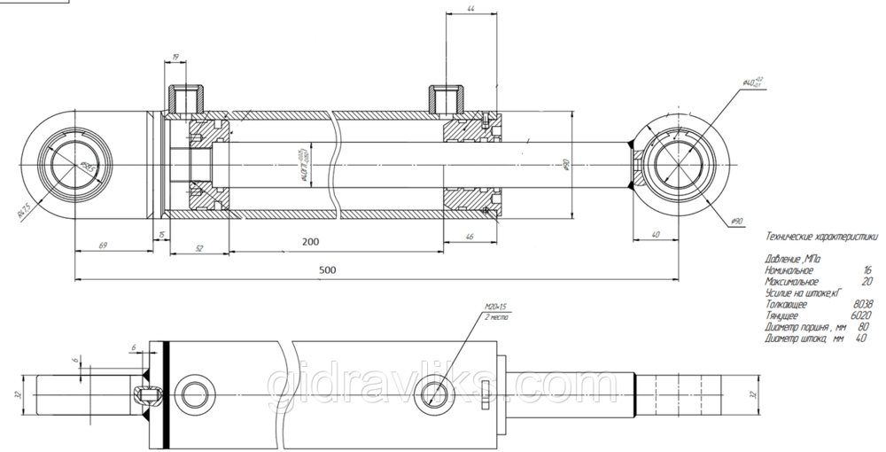 Гідроциліндр КУН 80х40х200.500 ШС