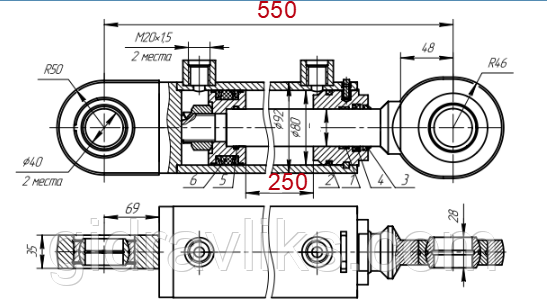Гідроциліндр Кун 80х40х250.550 ш/с MC80/40x250-3(4).11(550) Культиватори КШН-5,6, ККП-6, Борона БГР-6