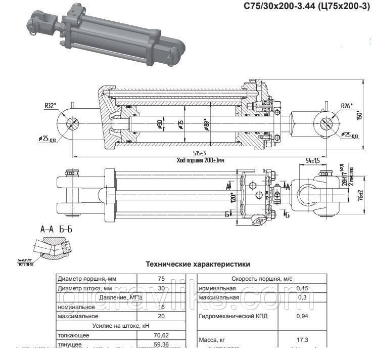 Гідроциліндр ЦС 75х200-3 старого зразка (ГЦ 75х30х200.515, імпортний варіант UBG)