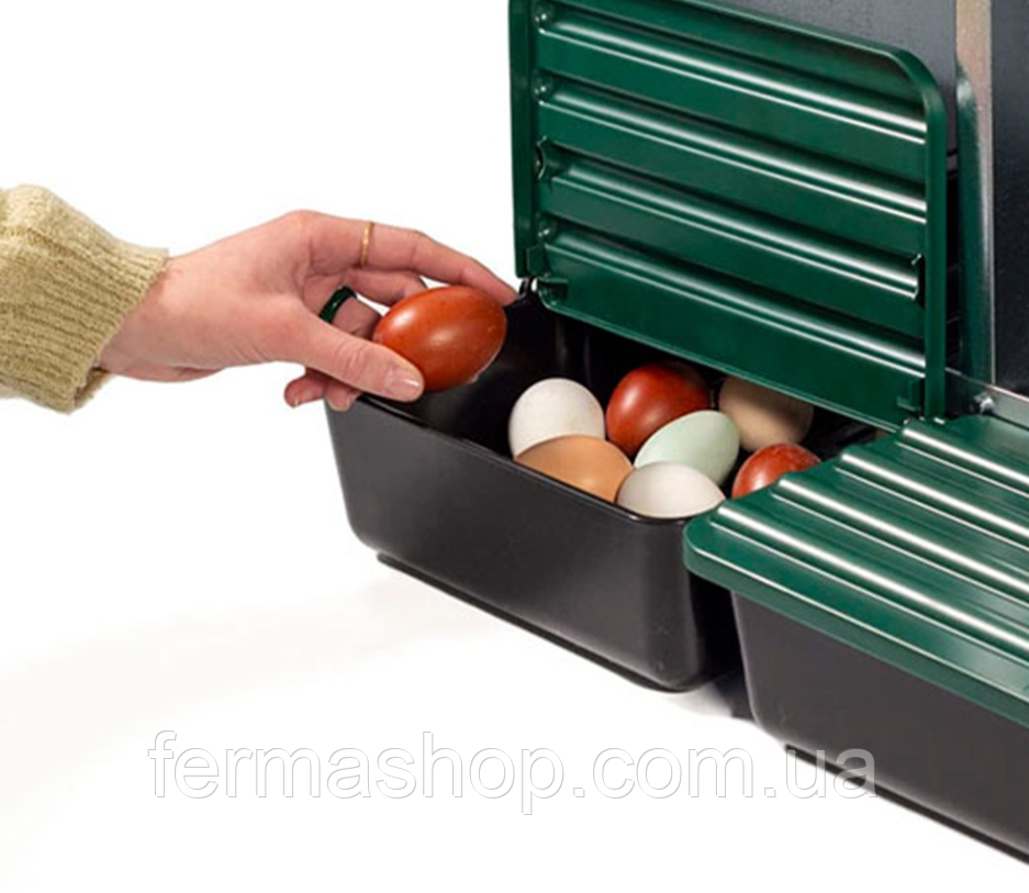 Благодаря отдельному яйцесборнику, яйца можно легко доставать снаружи.