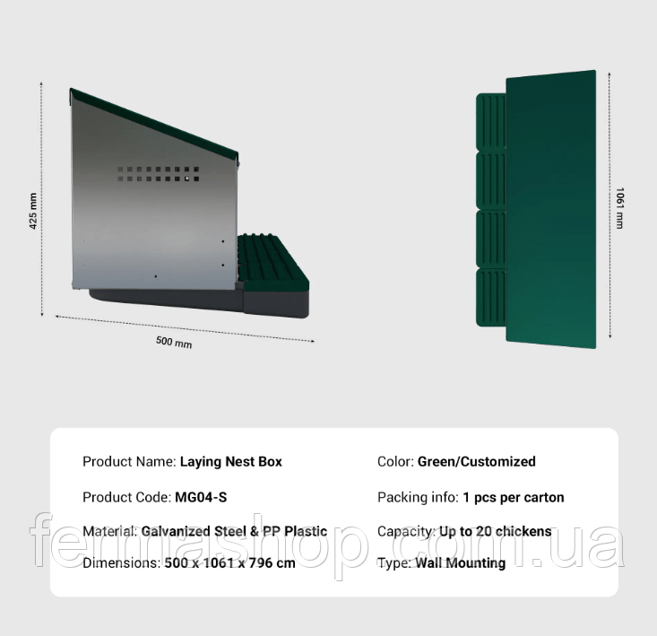 Это гнездо устанавливается на снаружи клетки, то есть яйцесборник будет снаружи, чтобы каждый раз не заходить в клетку, или курятник, а сам носист будет в середине.