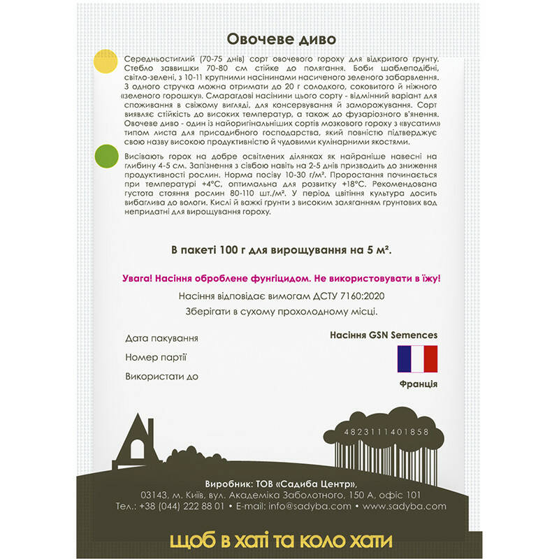 Сорт середньоранній, високоврожайний. Від сходів до початку збирання 70 - 75 днів. Висота рослини 50 - 70 см. У рослин здорові темно – зелені стебла. Формує довгі світло - зелені боби з 9 - 10 горошинами, з мозговою поверхнею, сплюснутою з боків. Зелений горошок однорідний, яскраво - зеленого кольору з добрими смаковими якостями масою до 20г з стрючка. Сорт стійкий до високих температур. Використовують в свіжому вигляді та для консервування. Культура холодостійка. Насіння висівають у ранні строки, при настанні фізіологічної стиглості ґрунту, загортаючи на глибину 4 - 6 см. Норма висіву 8 - 10 насінин на 1пог.м, ширина міжрядь 15 см, глибина заробки насіння 5 - 6 см. Сходи переносять весняні приморозки.