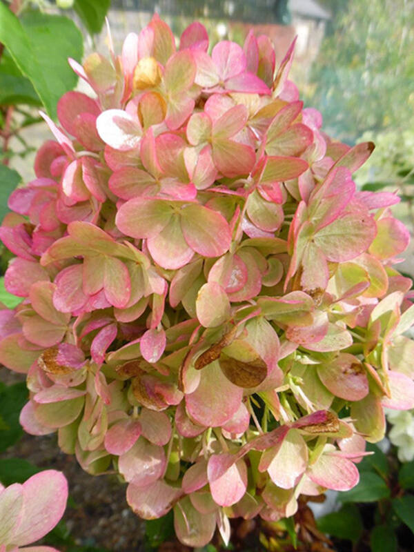 Гортензія волотиста Меджикал Кендл (Hydrangea paniculata Magical Candle) - декоративний, квітучий листяний кущ, компактної форми. Має дуже великі і пишні суцвіття, що бувають заважкими для грубих стебел, які є достатньо сильними. Не примхлива в вирощуванні і догляді, стане чудовим доповненням в клумбу безперервного цвітіння або як солітерна рослина на фоні зеленого газону. Розмір дорослого куща: у висоту та в діаметрі досягає 150 см. Зовнішній вигляд: пагони міцні, жорсткі, буро-коричневого кольору. Листя яйцевидної форми, насичено-зеленого кольору, з гострою вершиною, край листа зубчастий. Восени змінюють колір на жовтий. Цвітіння: суцвіття дуже щільні, широкопірамідальної форми, іноді бувають настільки великими, що можуть виникати складнощі при вирощуванні цього сорту в контейнері. Забарвлення: спочатку білий з легким салатовим відтінком, потім поступово переходить в рожевий до кінця цвітіння. Ґрунт: підходить від кислих до слаболужних, вологих родючих ґрунтів. Місце посадки, морозостійкість: перевагу віддає сонячним або місцям з затінком. Гарно ростиме на відкритому сонці в місці де багато вологи. Морозостійкість: висока. Застосування в ландшафтному дизайні: використовують в живі огорожі, в клумби різних стилів, гарно виглядає на газонах. Гарно поєднується з високими деревами та хвойними рослинами. Рекомендації по вирощуванню: не примхлива у догляді, вимагає стандартних дій при догляді з усіма рослинами: полив, добриво, стрижка, підвязка за потребою. Коренева шийка повинна бути на рівні з землею (як посаджено в горщику). Вимагає контрольованого поливу (зменшення поливу за 1 місяць до припинення опадання листя). Підгодувати добривом азотним або NPK - навесні та влітку, а без азотним - восени. Обрізка: восени зрізаємо сухоцвіти, а навесні очищаємо кущ від тонких гілок в скелеті рослини і укорочуємо гілки, залишаючи три бруньки від торішньої обрізки. Укриття не потребує.