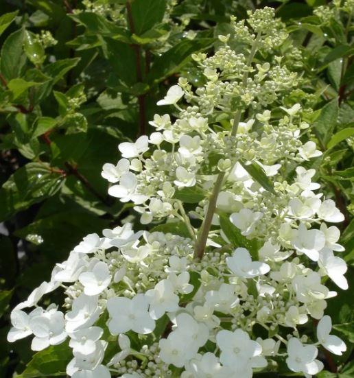 Цвітіння: цвіте в період з серпня по вересень квітами білого кольору, які після цвітіння рожевіють. Суцвіття конусоподібні, вужчі і менш густо вкриті стерильними квітками.