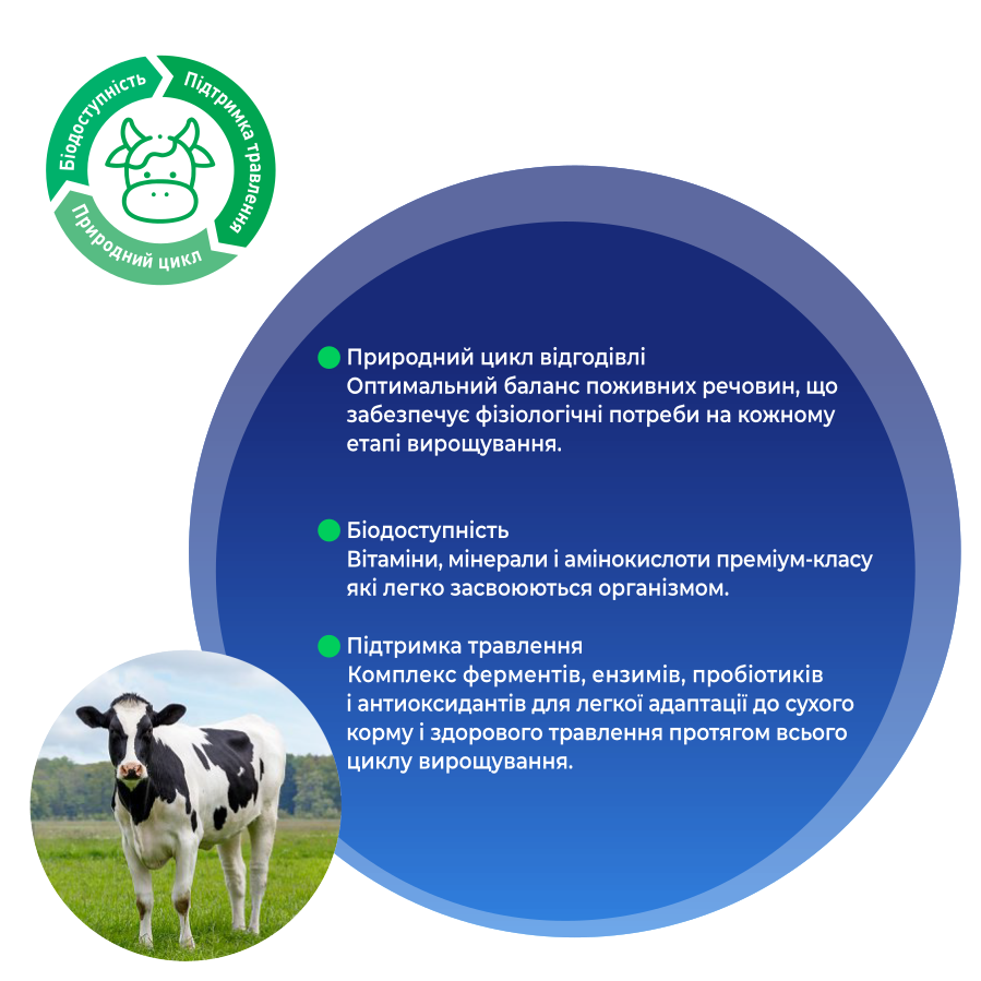 • швидкий ріст та розвиток телят