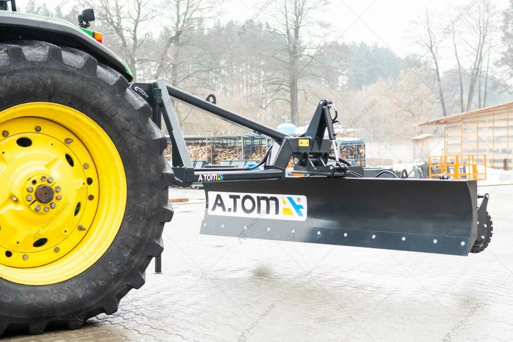 Грейдер на трактор - А.ТОМ 3000 — багатофункціональне сільськогосподарське навісне обладнання, що застосовується для створення насипів, профілювання їх поверхонь, вирівнювання дорожнього полотна, під час перемішування щебеневих, гравійних матеріалів, різних ґрунтів з в’язкими добавками, для планування земельних ділянок, кюветів, виїмок, укосів, а також під час комунальних робіт (прибирання снігу, сміття і т.д.). Обладнання має гідравлічний тип управління, виконане з високоміцної сталі та пристосоване до робіт в умовах підвищеної складності. Агрегатується з трактором за допомогою задньої навіски.