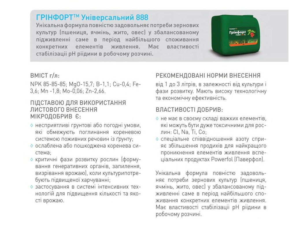 | Зерновые (пшеница, ячмень) | 1-3 листа (осень), кущение-выход в трубку, флажковый лист | 1-2 | 3 |