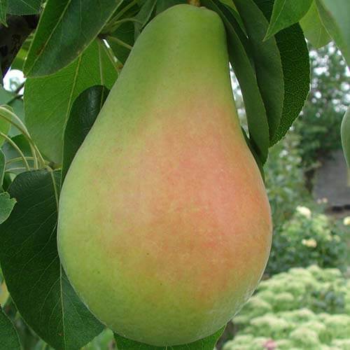 Плоди великі, масою 180-230 грамів, стандартної грушоподібної форми, зеленувато-жовтого кольору з рожевим рум'янцем на освітленій стороні.