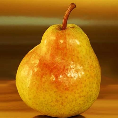 Плоди вище середньої величини, середня маса 160, максимальна— 300 г, округлі, симетричні, із широкоовальною вершиною і основою. Поверхня плоду гладенька, шкірочка матова, суха на дотик. Основне забарвлення в період знімальної стиглості золотаво-жовте, покривне — у вигляді легкої рожевої засмаги на окремих плодах. Підшкірні крапки численні, добре помітні, сірі, дрібні. М'якуш кремовий, соковитий, танучий, відмінного кисло-солодкого смаку, із приємною пряністю.