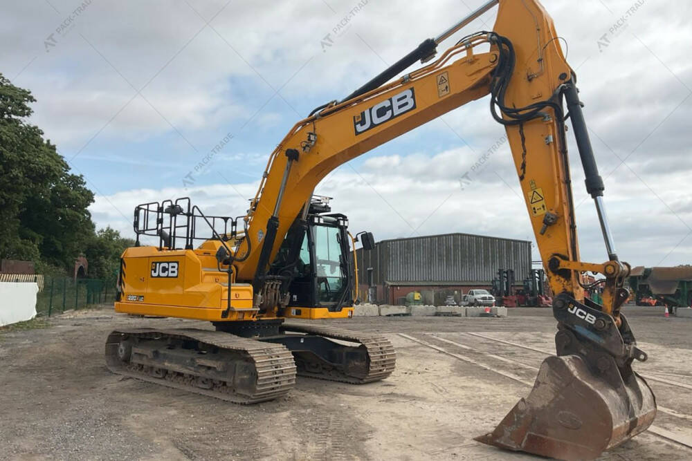 Гусеничний екскаватор JCB 220X LC, 2022 р/в. Напрацювання – 3786 м/год. Ківш — 1,3 м. Ширина гусениці: 700 мм. Камера заднього виду. Кліматконтроль. Магнітола. Лінія гідромолота. Сервісне світло. Глибина копання — 6,10-6,69 м.