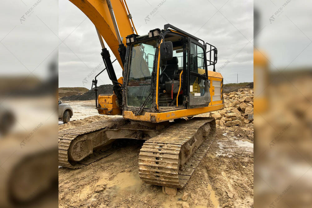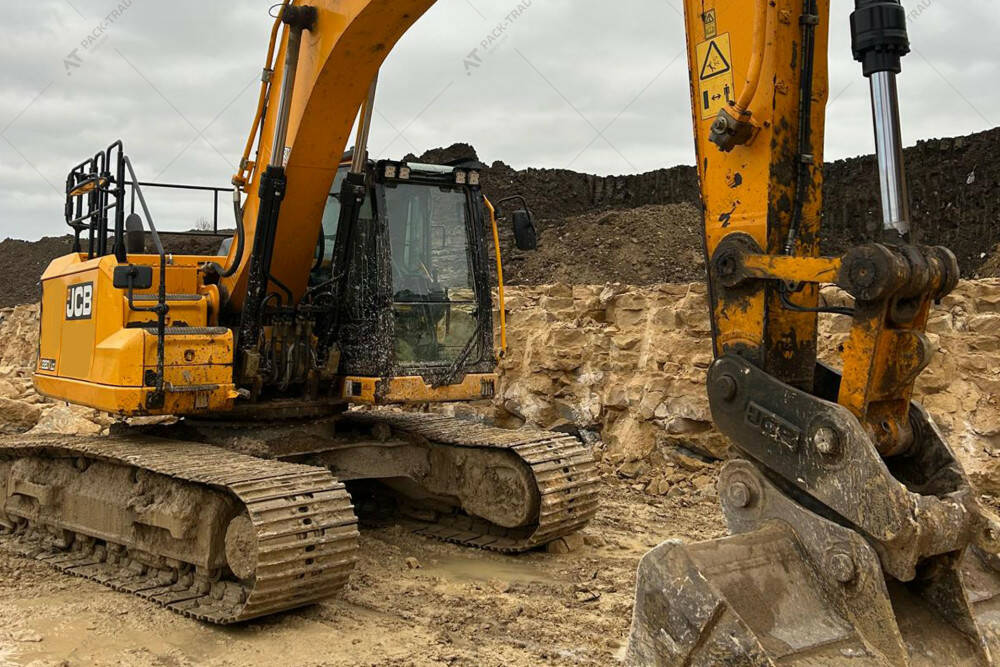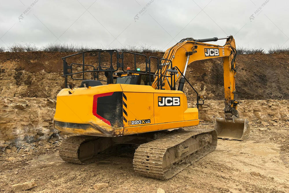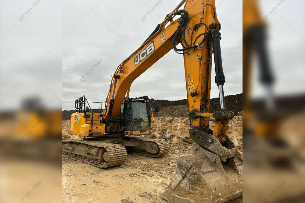 Гусеничний екскаватор б/в JCB JS220X, 2018 р/в, з напрацюванням 10233 м/год. Глибина копання — 6–6,7 м. Розмір гусениці: 700 мм. Ківш 1,2 м. Кліматконтроль. Лінія гідромолота. Магнітола.