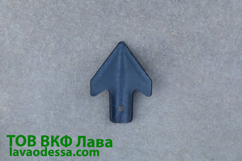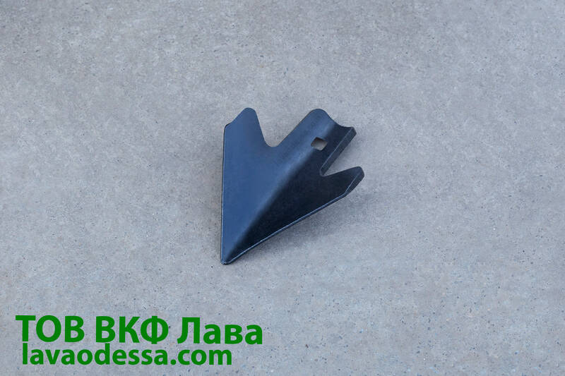 Гусяча лапа-накладка 110 мм - нового зразка, застосовується на європаках. Служить для розпушування ґрунту і підрізання бур'янів. Кріпиться до стійки болтом ПМ 10*45.