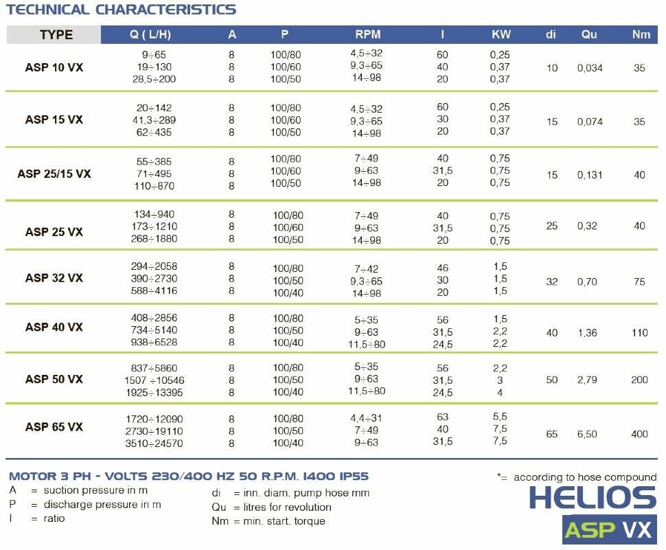 Хімічний перистальтичний насос FLUIMAC HELIOS ASP 65 VX 15600 л/год, 7,5 кВт, 40 об/хв, з регулюванням продуктивності