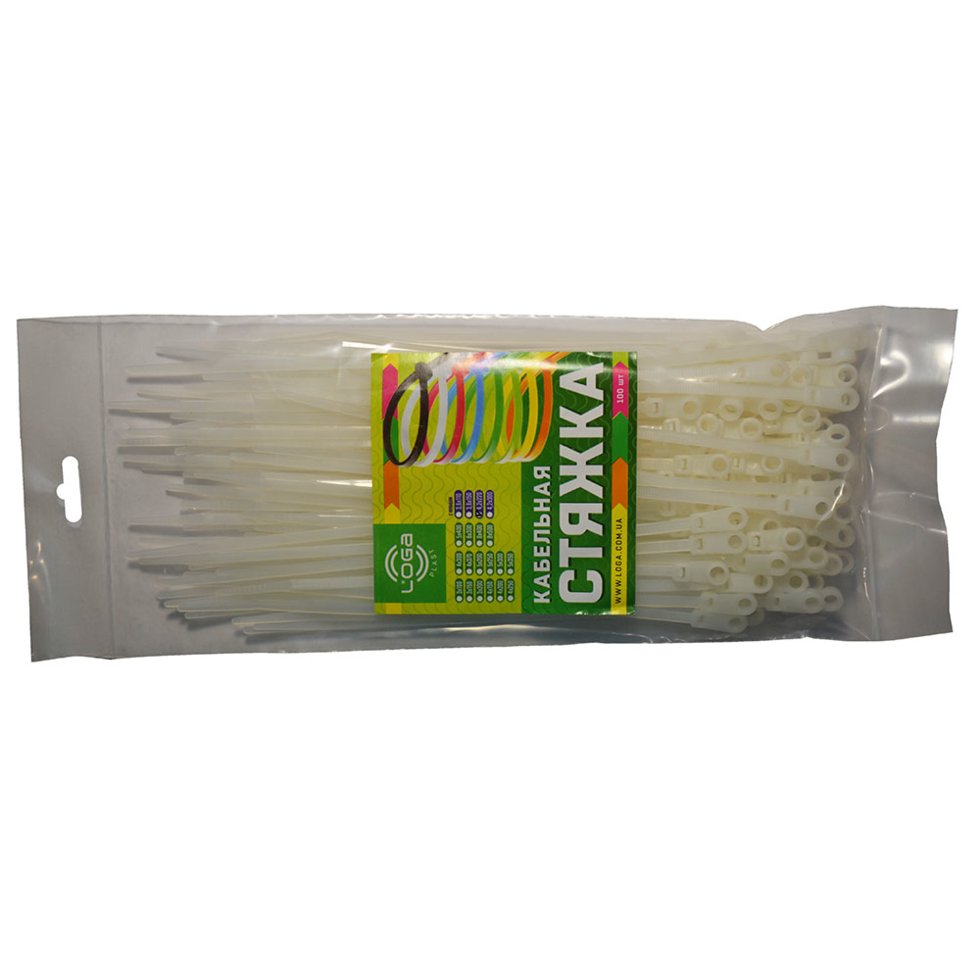Хомут нейлон 3,6*110 мм з монтажним кільцем 100шт/уп білий