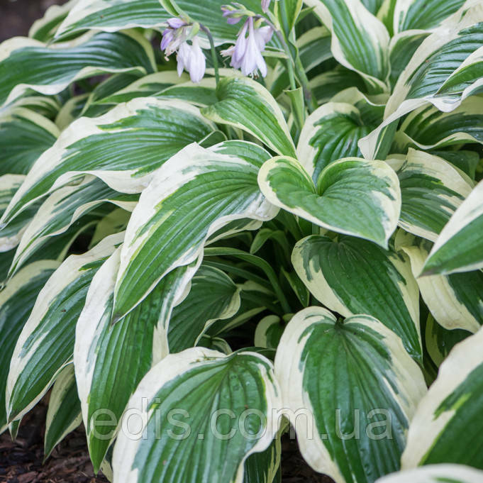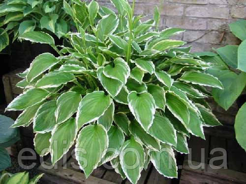 Листя овальні з подовженим завивающимся кінчиком і хвилястим краєм, яскраво-зелені з білим обрамленням.