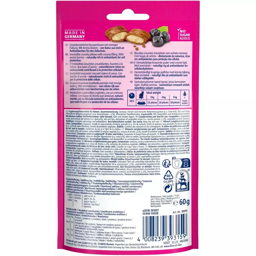 Хрусткі ласощі для котів Вітакрафт Vitakraft Crispy Crunch подушечки з кремовою начинкою з качкою та ягодами аронії, 60 г